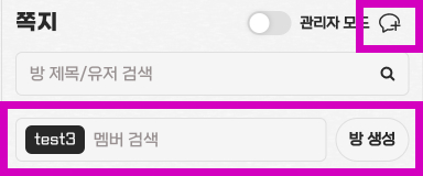 \[**관리자모드**] 에서만 단체방 생성이 가능합니다.\